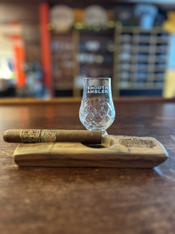 Pair your favorite whiskey and cigar with our own white oak whiskey staves. Made by a local WV artisan woodworker, we help you take multi-tasking to a new level. Fits one regular Glencairn Nosing Glass or one Crystal Cut Glencairn Glass. (Does NOT include Glencairn)